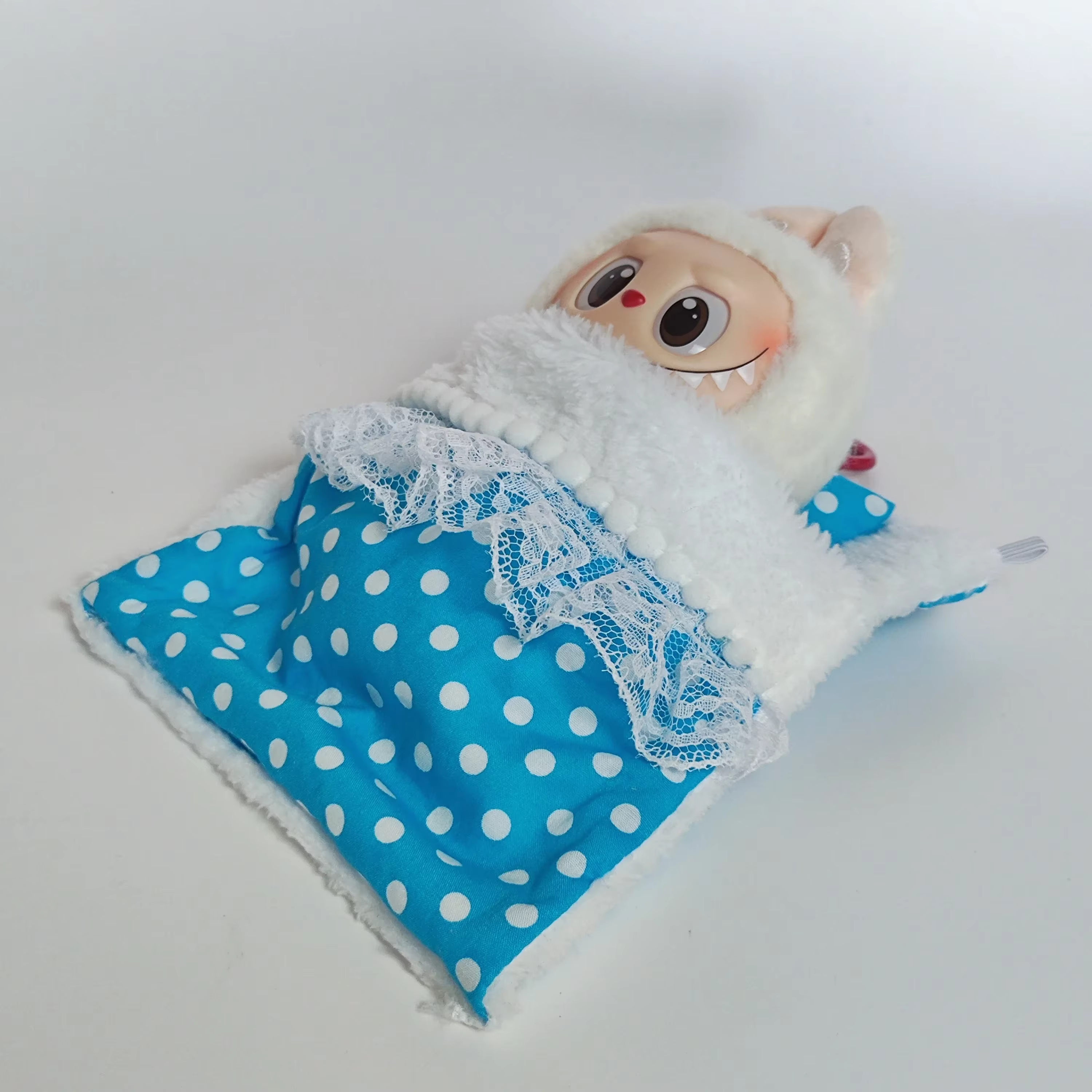 Labubu – Cama mini para muñecas de 15-17 cm, set de 3 piezas con edredón, almohada y accesorios, pijamas de muñeca de algodón suave, saco de dormir para casa y ropa de muñeca.